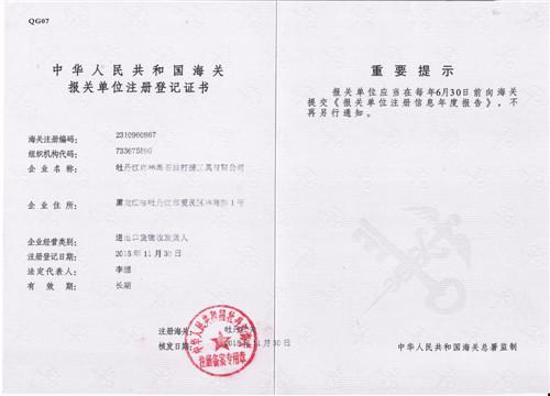 海關(guān)報(bào)關(guān)單位注冊(cè)登記證書(shū)